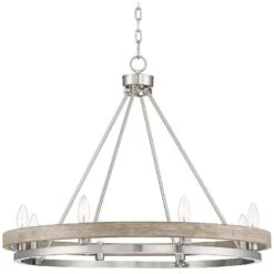 Lora 29 1/4″ Wide Nickel And Gray Wood Finish 8-Light Ring Chandelier