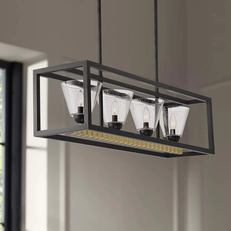 Possini Euro Callan 38″ Wide Bronze 4-Light Rectangular Island Pendant