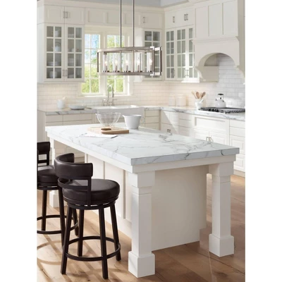 - Modern farmhouse five-light chandelier from the Possini Euro Design lighting brand. Ideal for kitchen island lighting or over a dining room table.