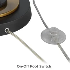 Possini Euro Design Mid Century Modern Torchiere Lamp 4-Light 68″ Tall Antique Brass Off White Linen Cone Shade Living Room Office Uplight