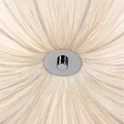 This wonderfully expressive ceiling light features a white ivory fabric shade that adds a soft and elegant look. It comes in a draped, scalloped shape that resembled a flower or an umbrella. Chrome finish accents complete this charmingly contemporary-retro design.