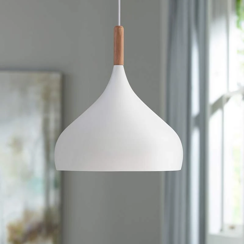 Possini Euro Felton 13″ Wide White And Wood Modern Mini Pendant