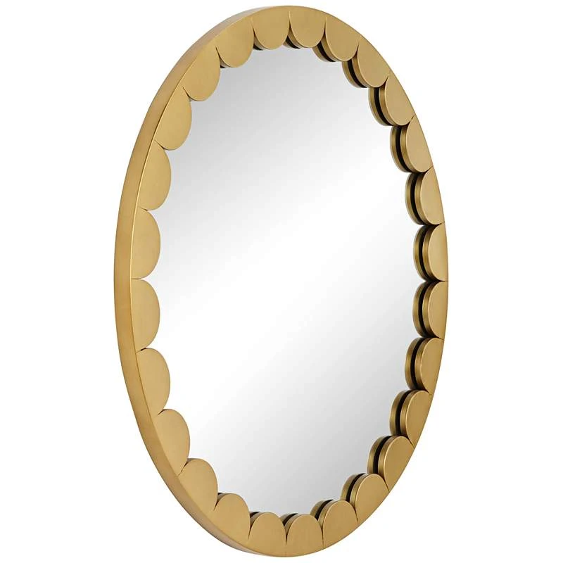 Possini Euro Garbo Matte Gold 32″ Round Scalloped Edge Mirror