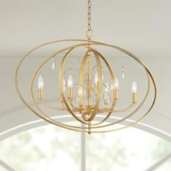 Be the first to review “Possini Euro Tiller 32″ Wide Gold Leaf 8-Light Foyer Pendant” Cancel reply