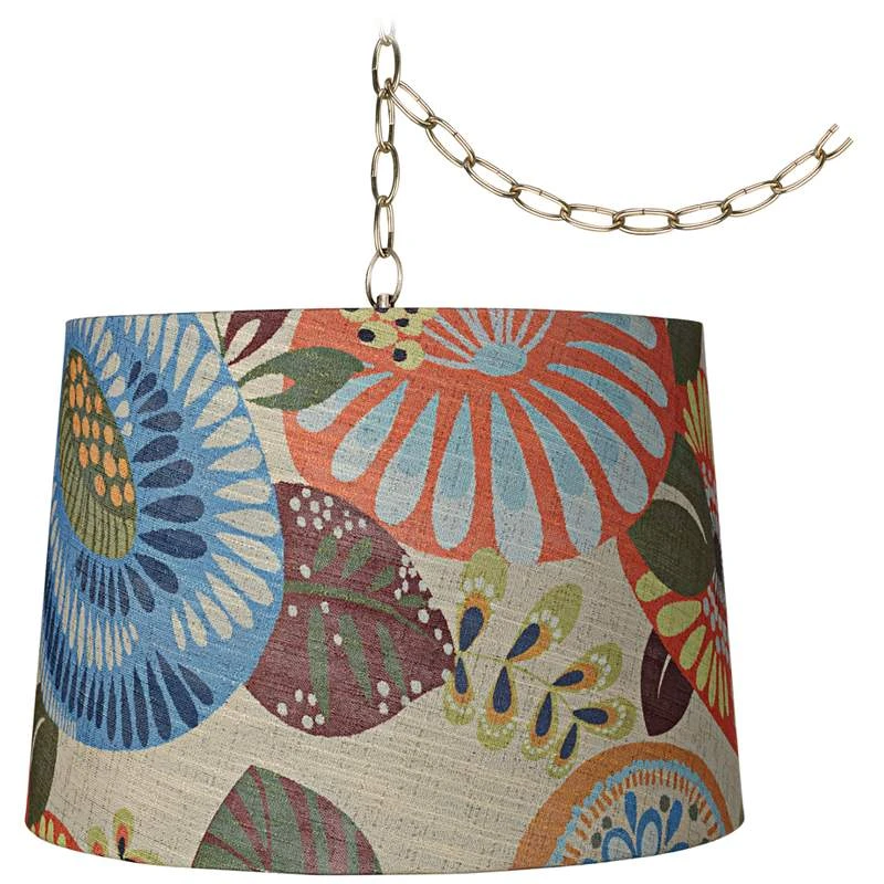 Tropic Drum 16″ Wide Antique Brass Plug-In Swag Chandelier