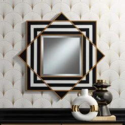 Zorra Black White Stripe 36″ Square Wall Mirror